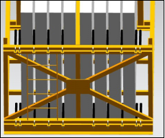 b. 第一代運輸架左右兩側(cè)必須使用立柱對拉,做好構(gòu)件傾斜的防護(hù),如下圖示: